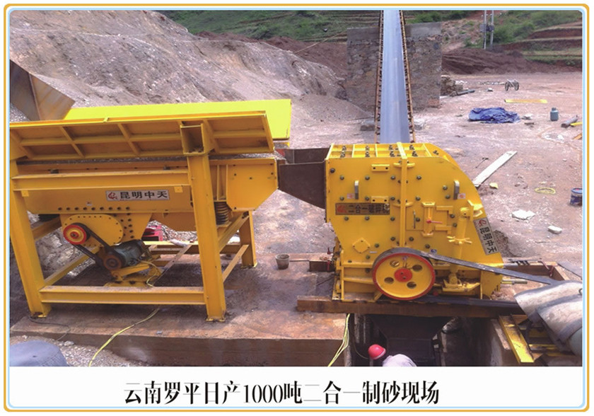 新型高效節(jié)能型二合一破碎機(jī)是云南中天礦山機(jī)械制造有限公司繼“砂機(jī)王“系列產(chǎn)品開發(fā)以來,又一破碎設(shè)備研發(fā)的重大突破。該設(shè)備以低能耗、高產(chǎn)量、投資小,配件損耗低等深受用戶好評。