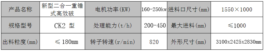 CK2型新型高效節(jié)能型二合一破碎機(jī)術(shù)參數(shù):